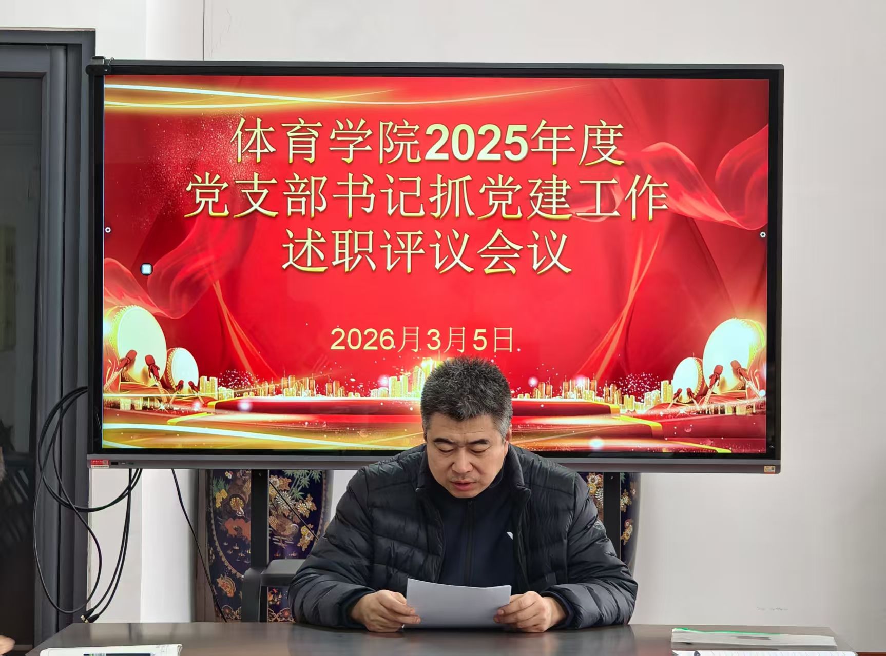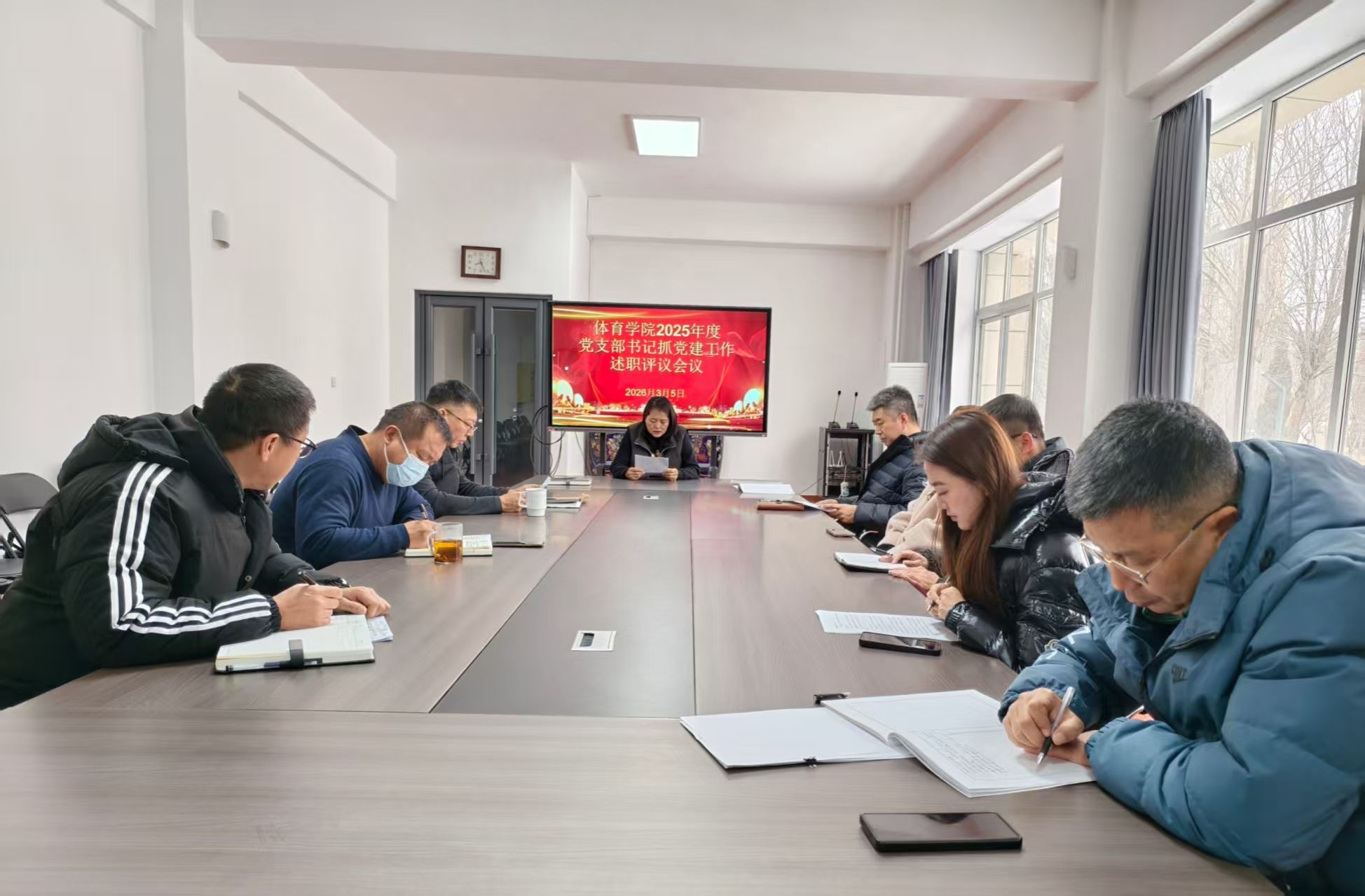 3月5日,体育学院召开2025年度党支部书记抓基层党建述职评议会。学院领导班子、党支部书记、系部主任参会,会议由学院党总支书记崔松峰主持。